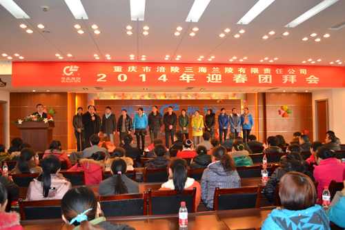 2014年1月23日上午,三海兰陵公司在多功能会议室隆重举行了2014年迎新团拜会。华国平董事长、张小琼副总经理、郑建荣副总经理以及公司全体员工参加了此次迎新团拜会。