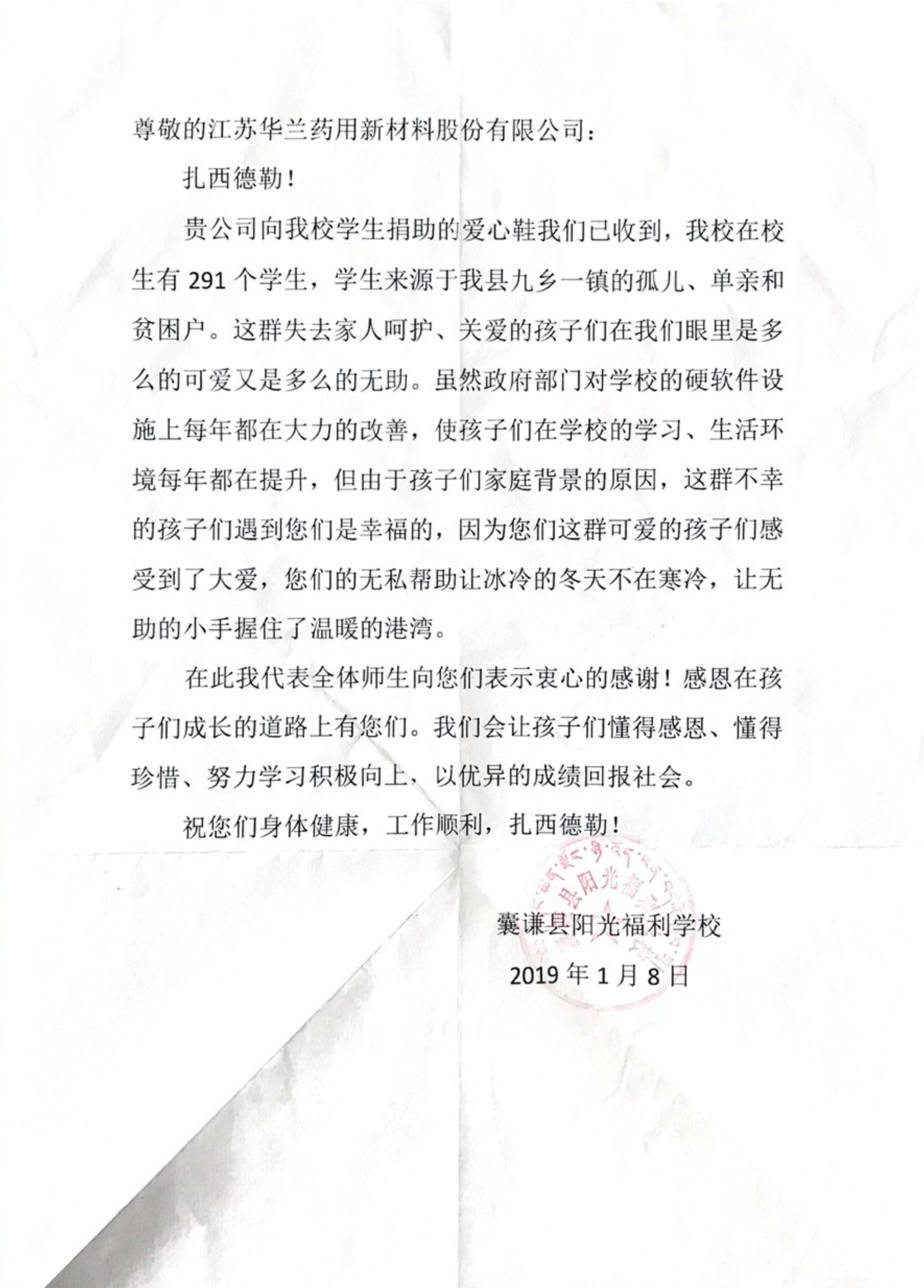 beat365爱心捐助青海福利小学后收到感谢信